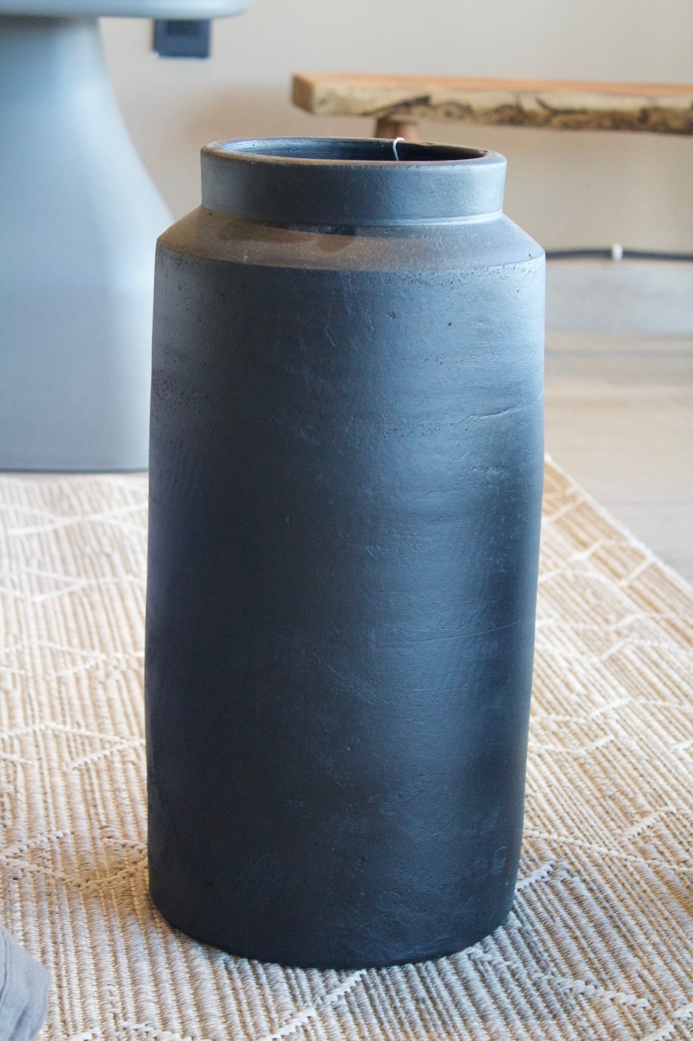 Jarrón cilíndrico de 43 cm de altura y 22 cm de ancho, con un elegante acabado negro mate que irradia sofisticación y modernidad. Su diseño simple y contundente lo convierte en una pieza versátil, ideal para destacar en ambientes minimalistas, industriales o contemporáneos. Perfecto para lucir como un objeto decorativo por sí solo o para combinar con ramas secas, eucalipto u otras opciones botánicas que contrasten con su tonalidad oscura. Ideal para recibidores, salas de estar o estudios.