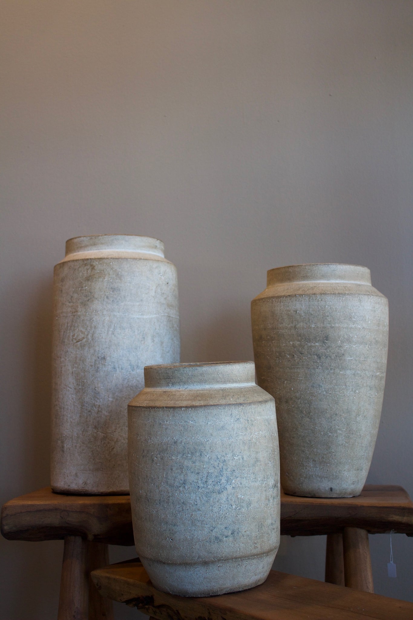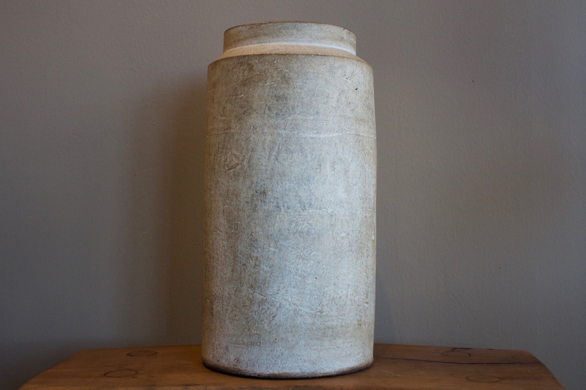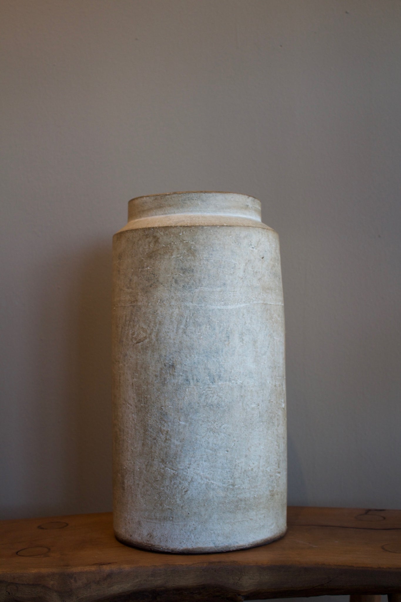 Gracias a su tamaño alto y estilizado, este jarrón es perfecto para exhibir ramas secas, flores largas o simplemente como un elemento decorativo independiente en mesas auxiliares, repisas o el suelo. Su textura mate y apariencia natural lo hacen versátil, adaptándose a estilos decorativos como industrial, bohemio o minimalista.