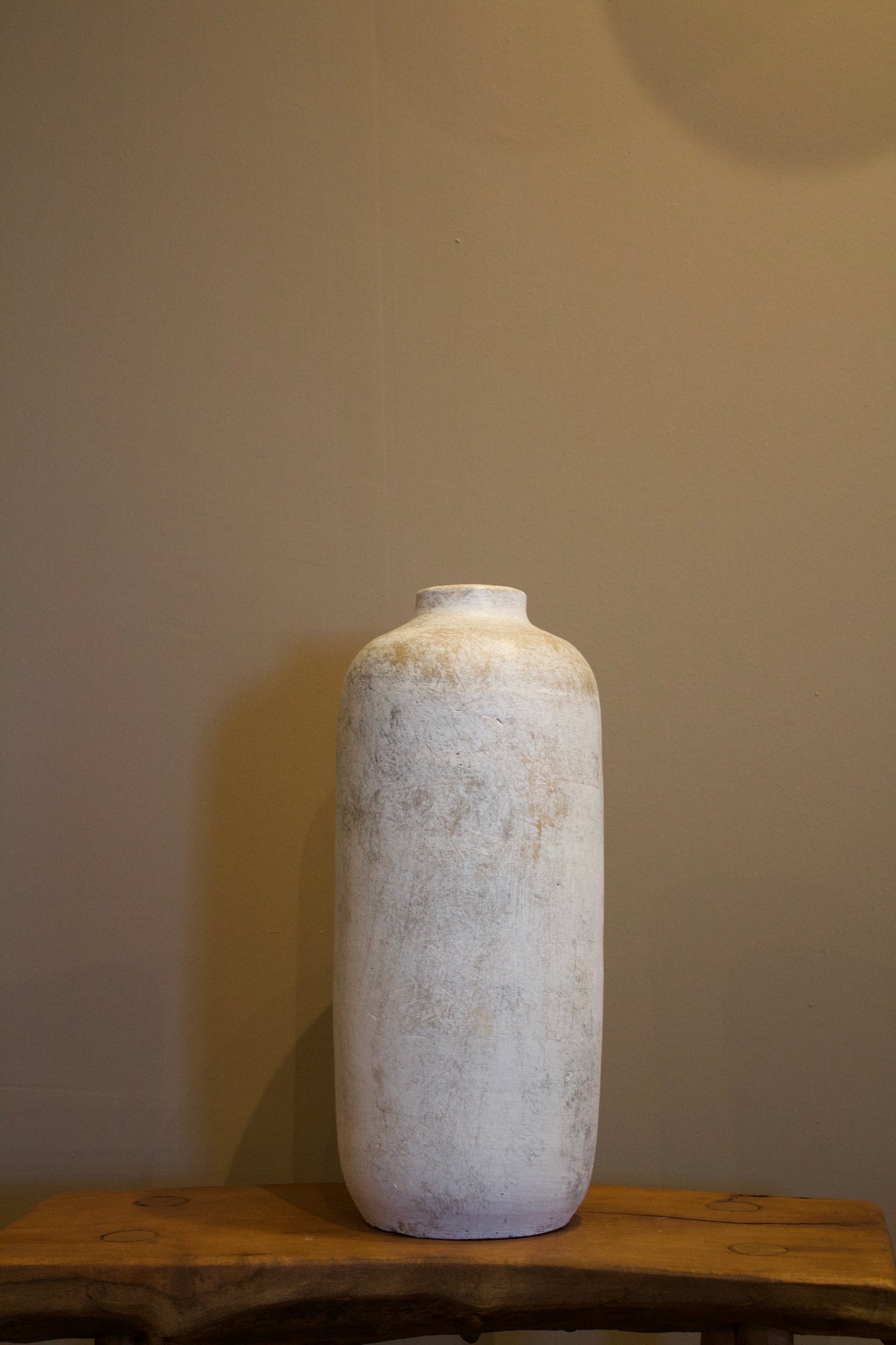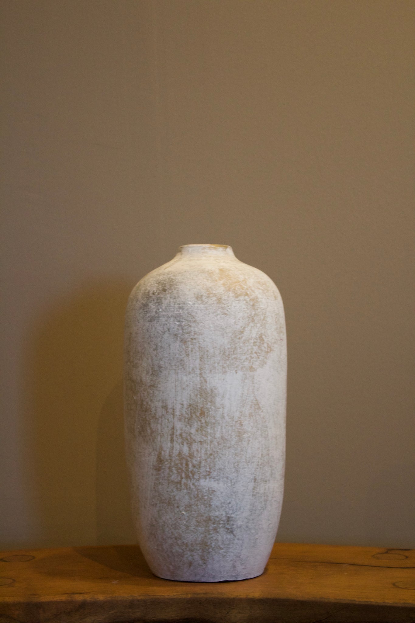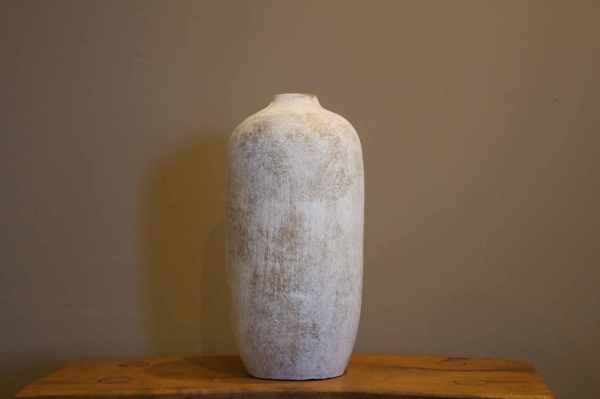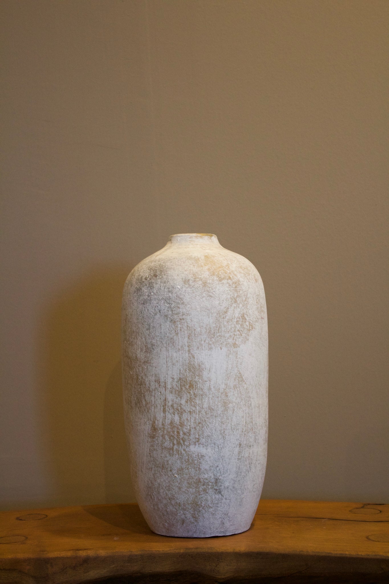 Estos jarrones decorativos de barro natural ofrecen una estética elegante, minimalista y atemporal. Su silueta cilíndrica con cuello corto y su acabado envejecido en tonos beige claro los hacen perfectos para interiores neutros, costeros o contemporáneos.