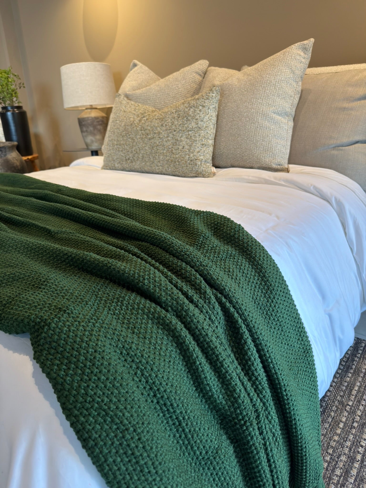 Descubre la calidez perfecta con nuestra manta de punto Malacon Soft Collection, diseñada para transformar tu cama y tu espacio en un refugio acogedor. Su textura ultra suave y su tejido 100% acrílico crean un look clásico estilo cabaña, aportando un ambiente cálido, elegante y atemporal a cualquier habitación.