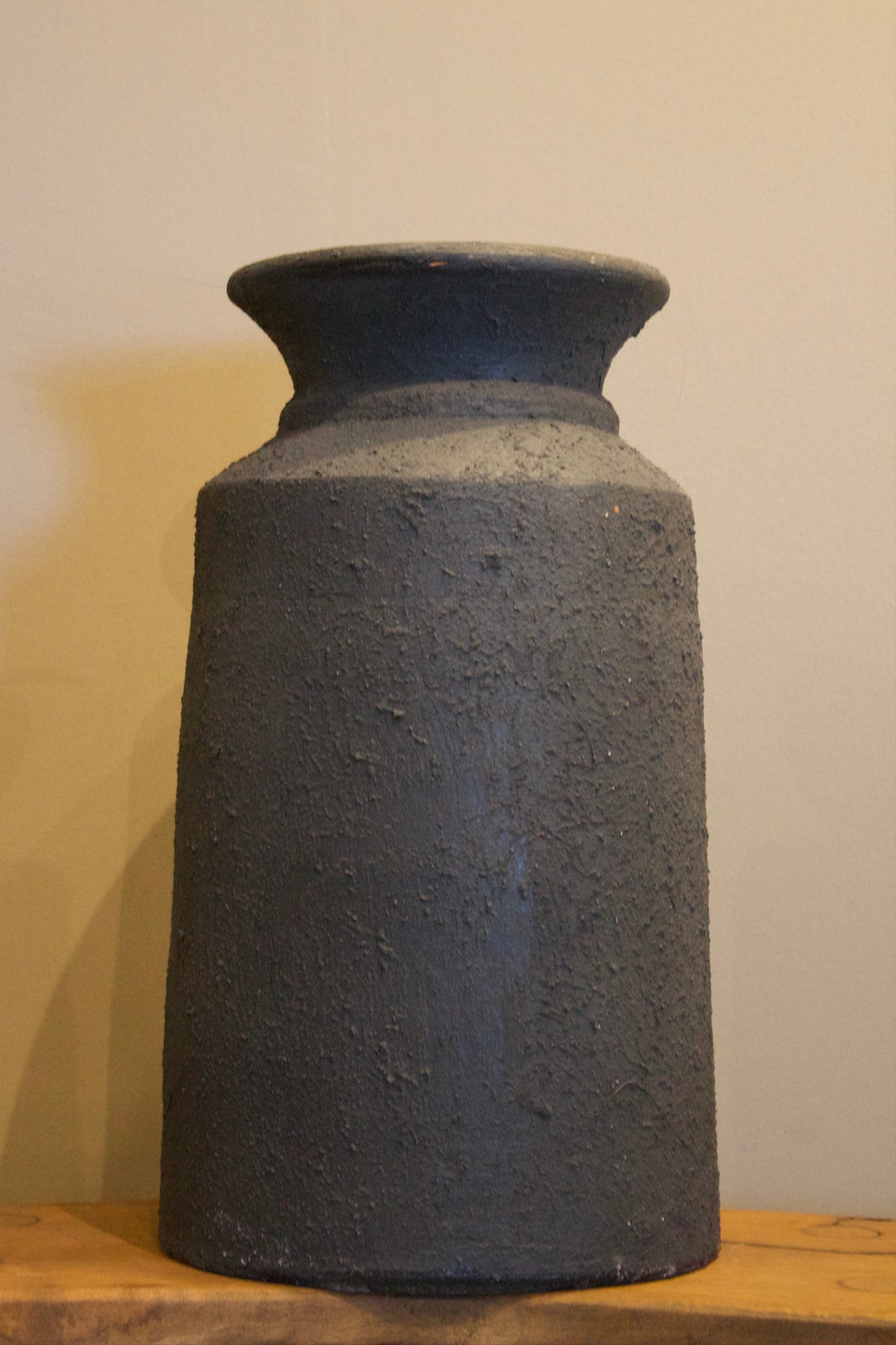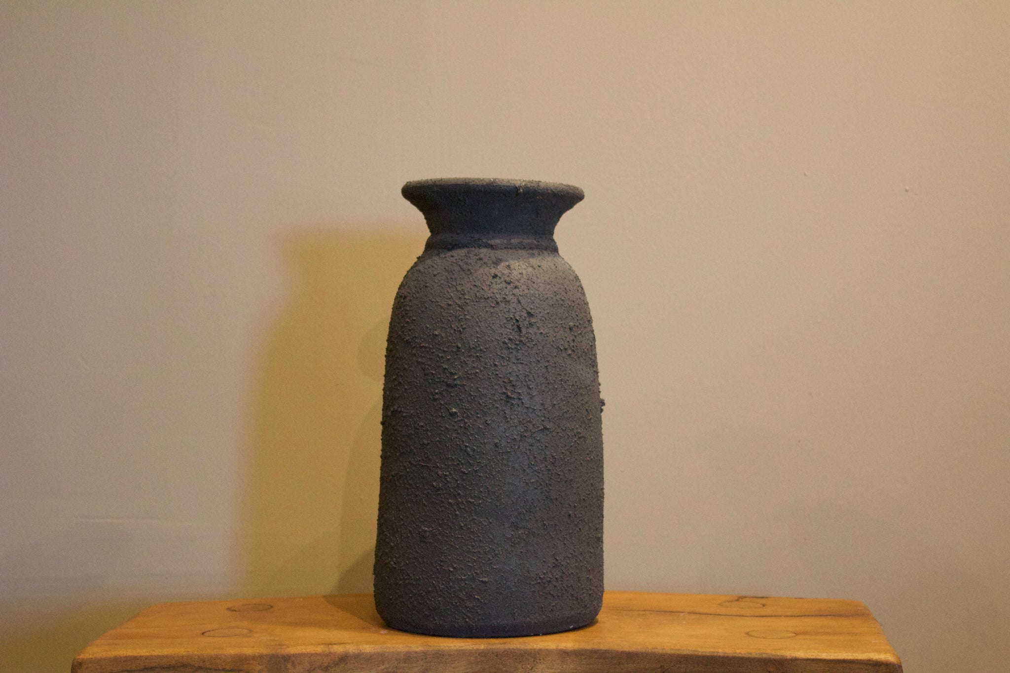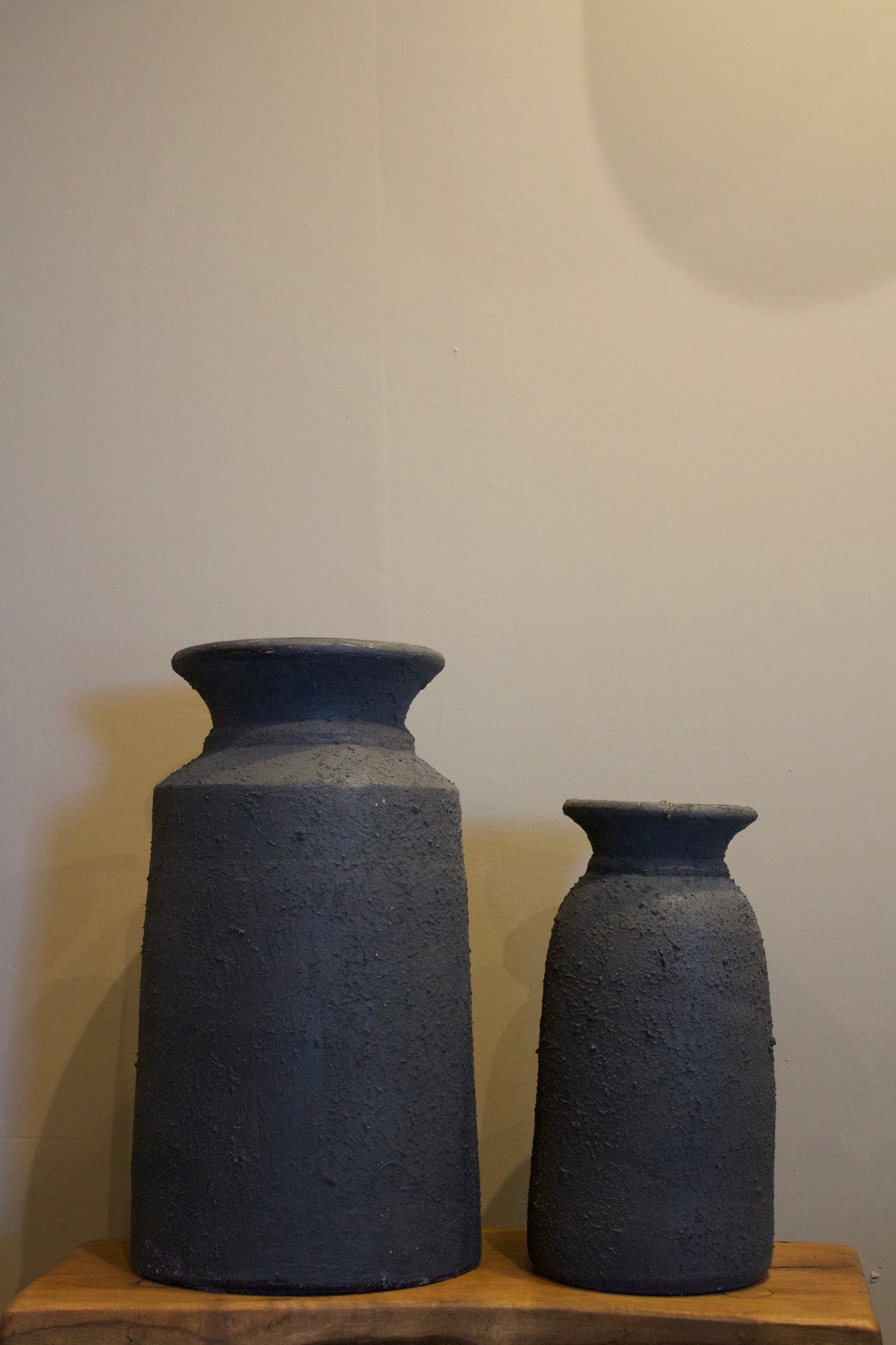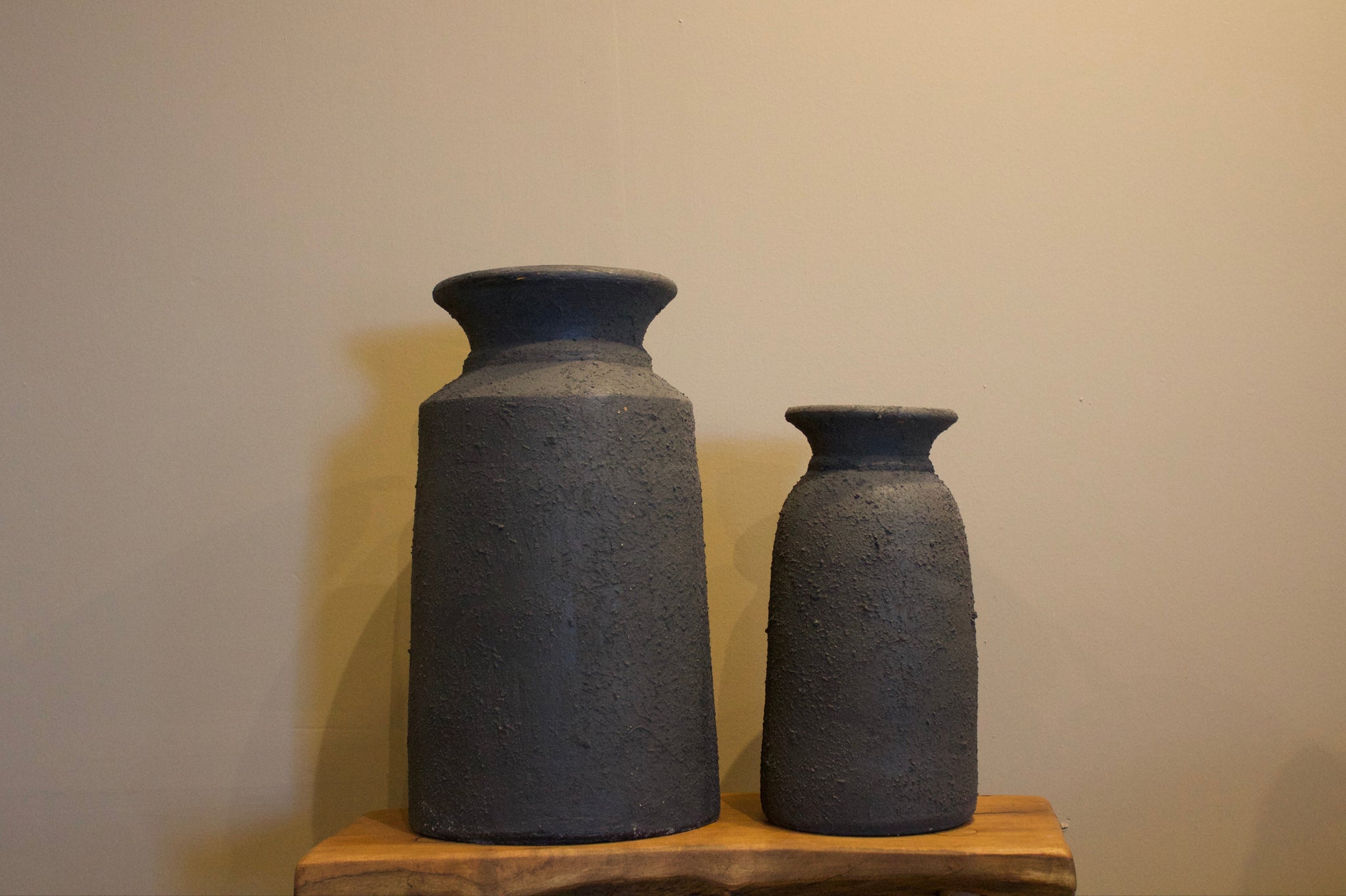 Con un diseño sobrio y elegante, estos jarrones decorativos de barro natural destacan por su acabado texturizado en tono negro mate y su forma estilizada de cuello amplio. Son piezas que aportan carácter y sofisticación a cualquier espacio, ideales para estilos contemporáneos, industriales o rústicos.