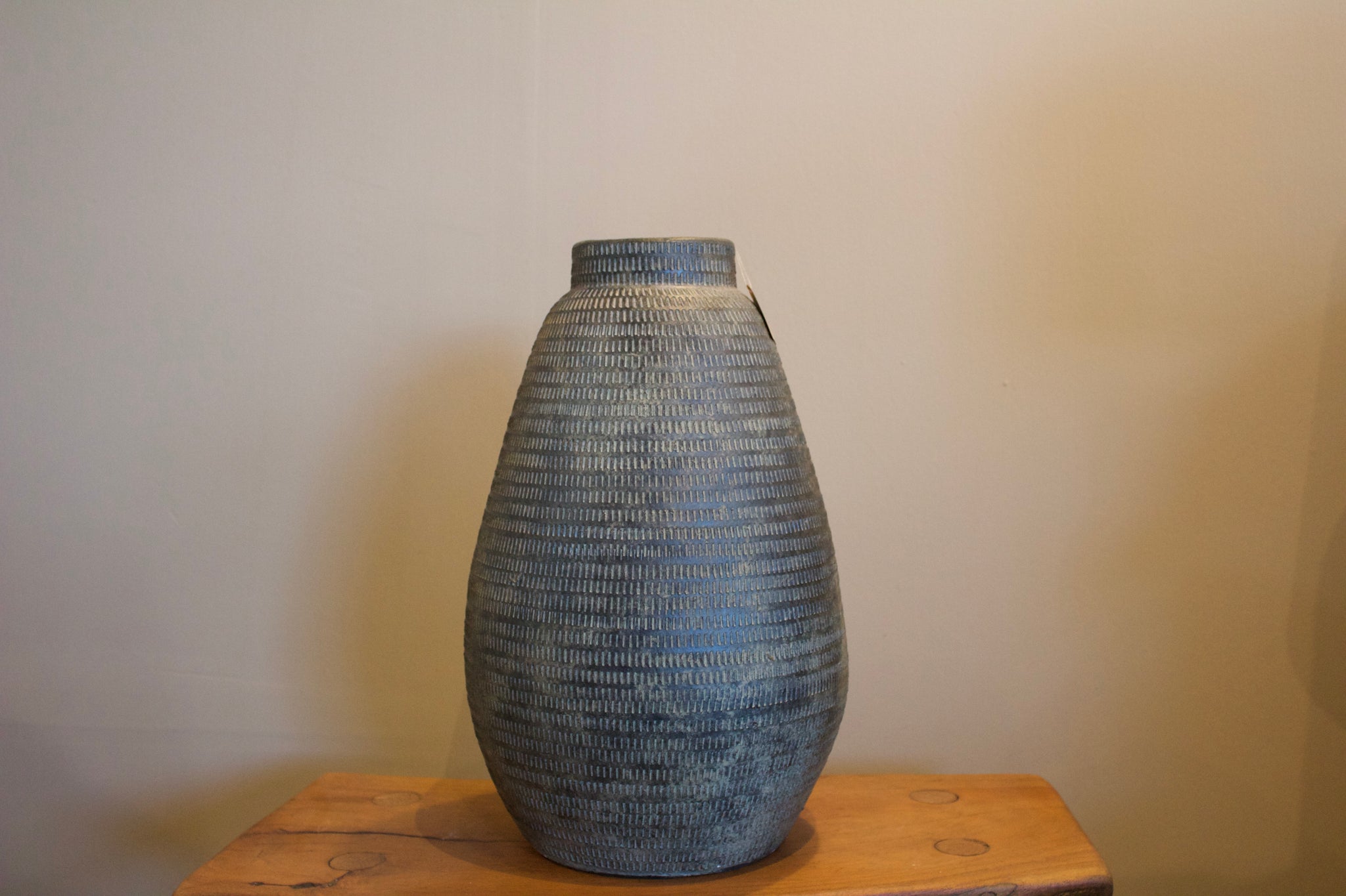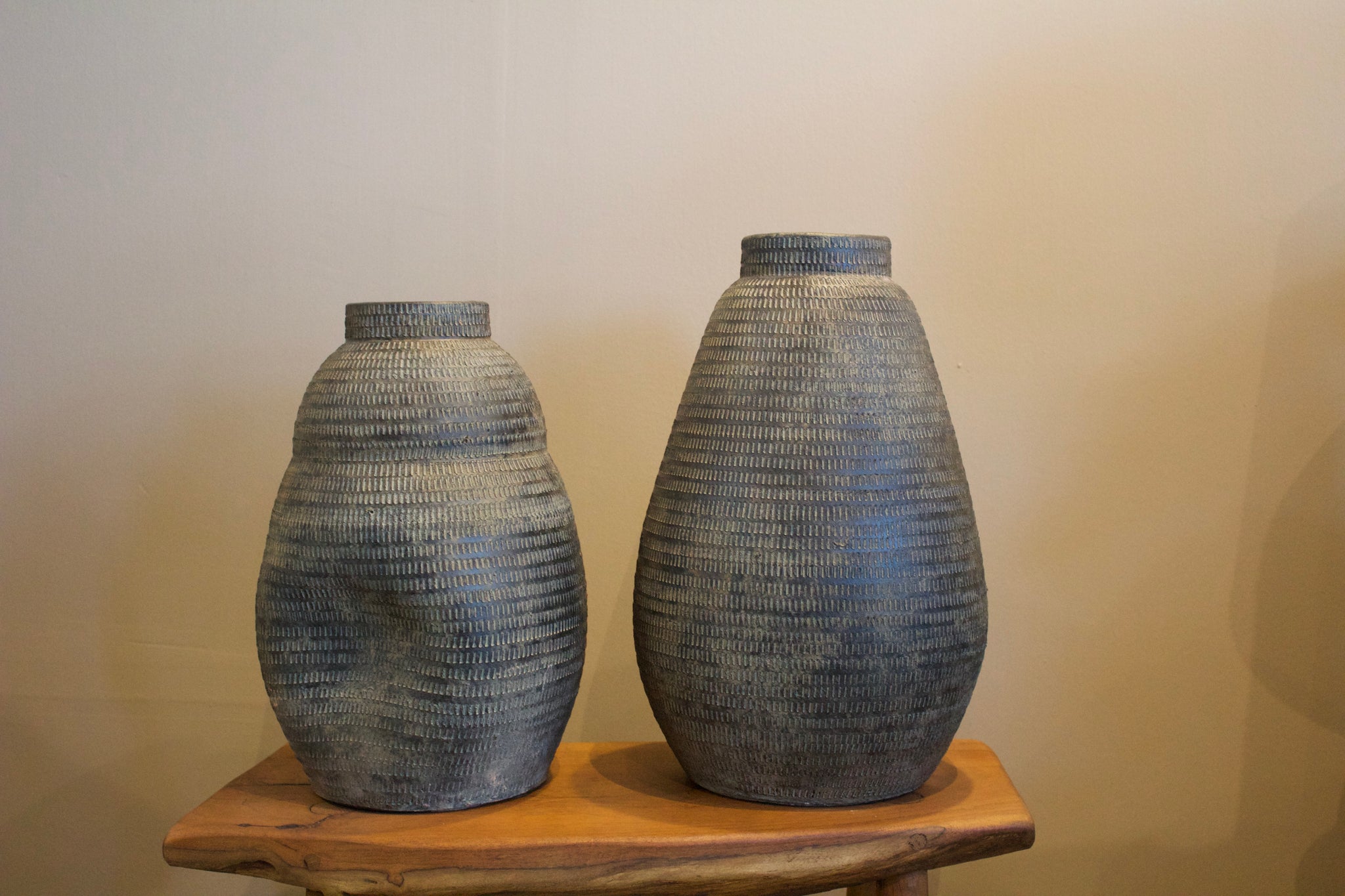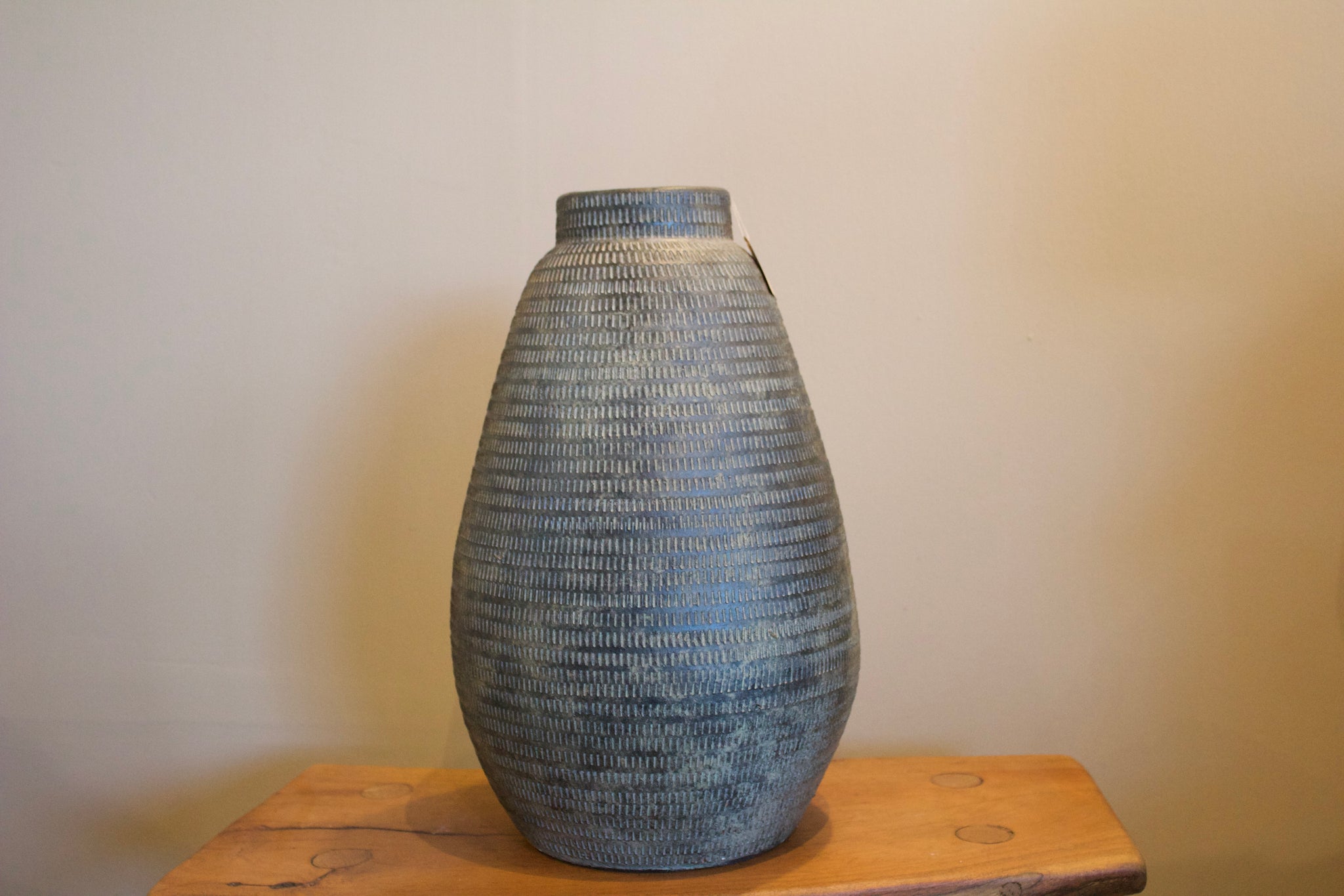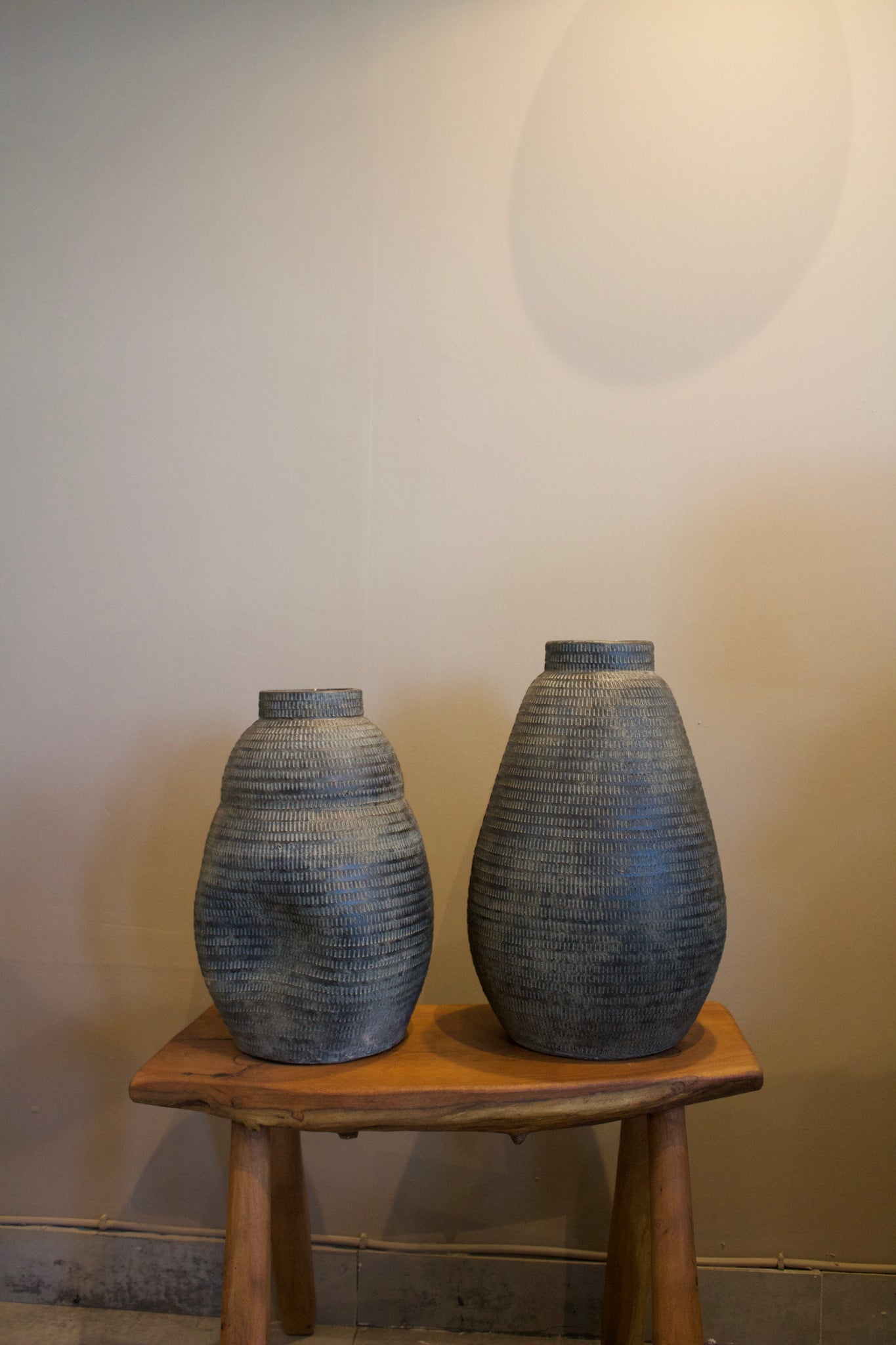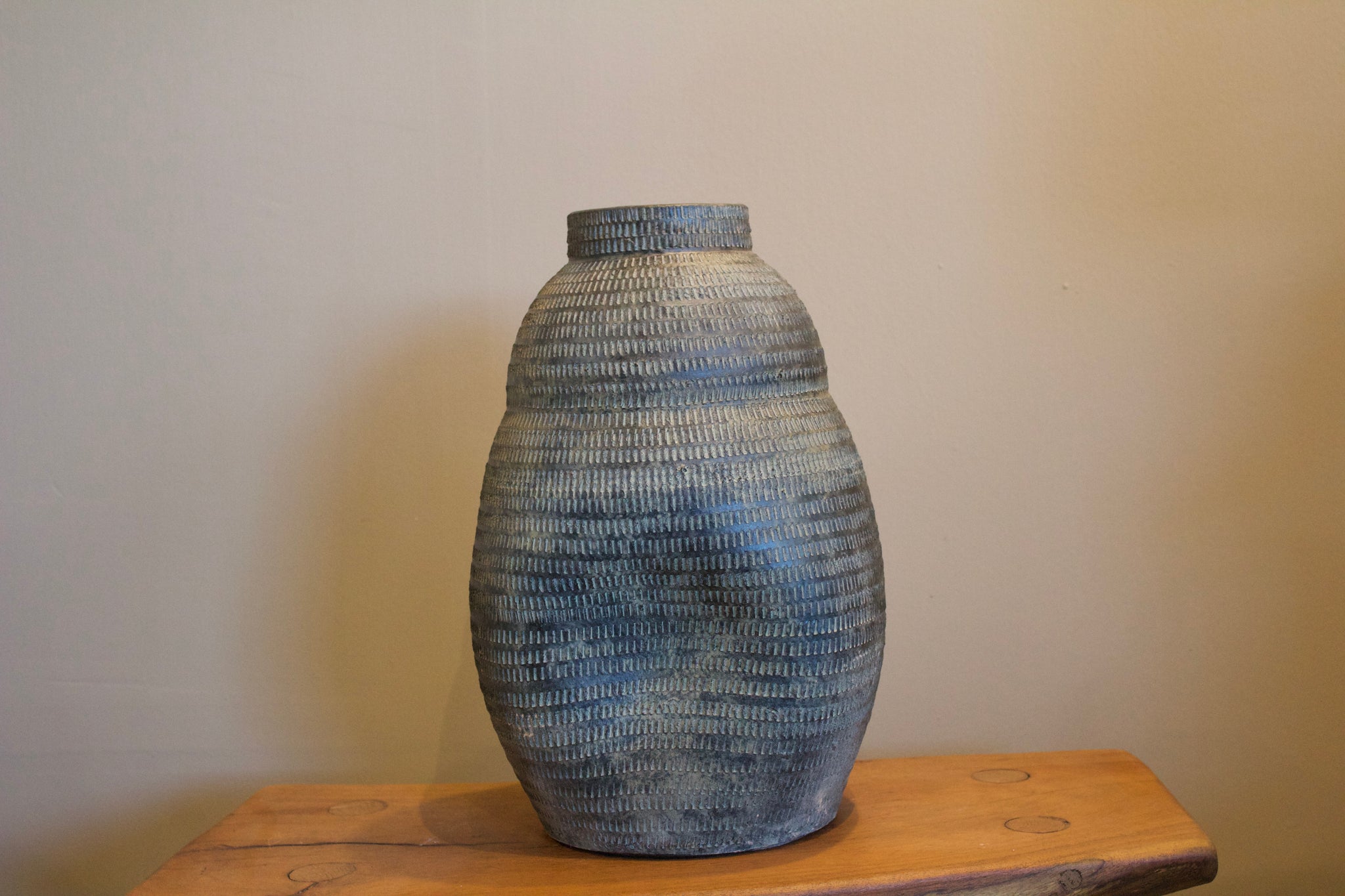 Con una silueta redondeada y orgánica, el jarrón [084] destaca por su volumen acogedor y sus líneas sutiles que imitan el ritmo de la naturaleza. Su textura repetitiva hecha a mano añade profundidad y un aire ancestral que combina perfecto con estilos rústicos, bohemios o contemporáneos.